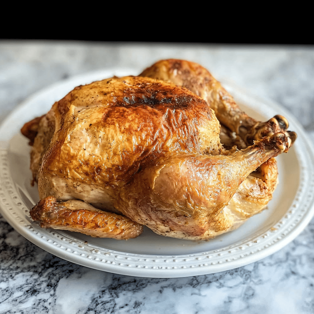 If your chicken isn’t crispy enough, you can increase the temperature to 400°F (200°C) for the last 5-10 minutes of cooking. Be sure to keep an eye on it to prevent burning. - Can I make this recipe with chicken parts instead of a whole chicken?