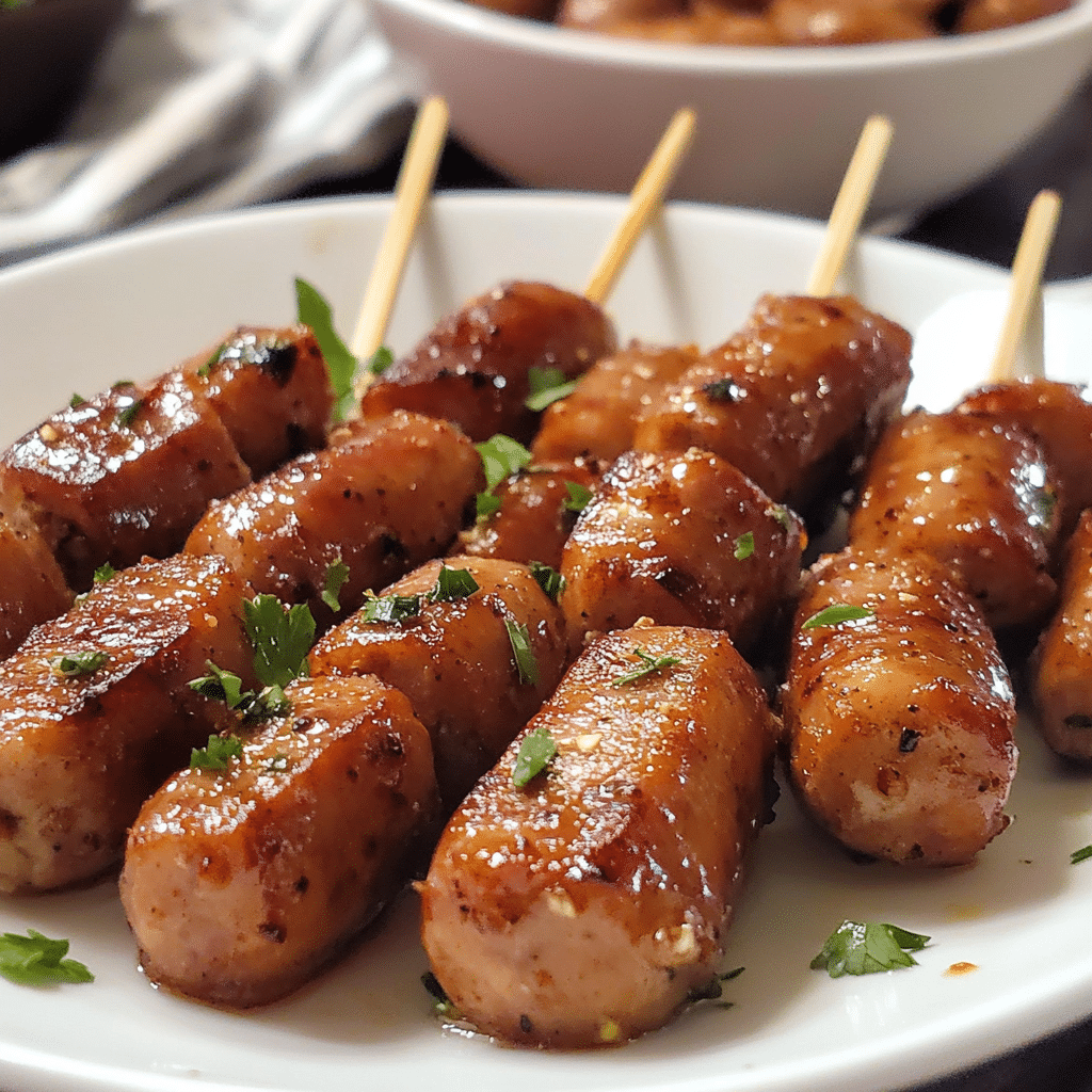 These sausages are ideal for party appetizers. Serve them with a variety of dips such as ranch, BBQ sauce, or even a creamy yogurt-based dip. Guests will love picking up these bite-sized treats and dipping them into their favorite sauces.