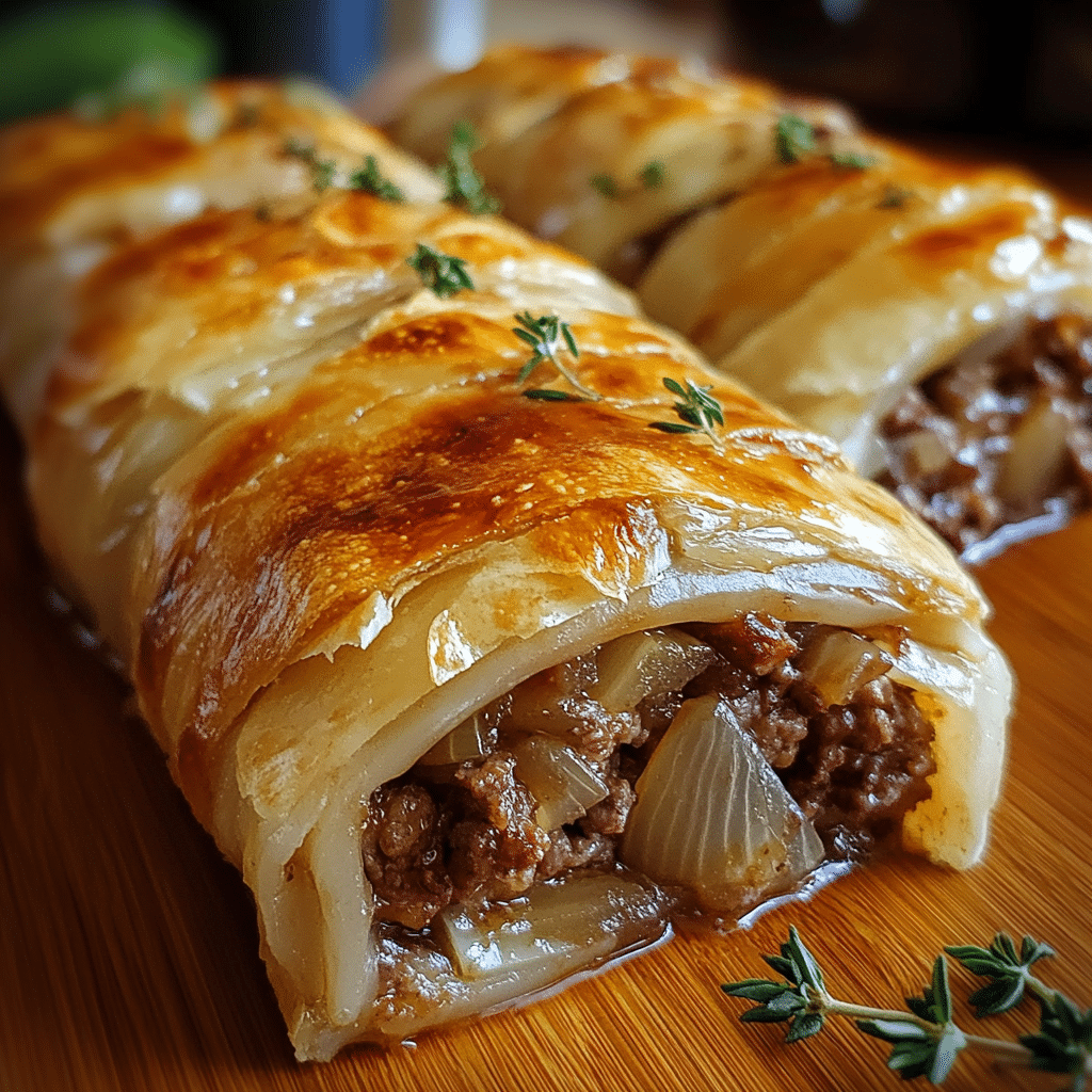 French Onion Beef Roll-Ups are a savory and indulgent dish that brings together the rich flavors of caramelized onions and tender beef. These roll-ups are a deliciously comforting meal, perfect for any occasion, whether it’s a weeknight dinner or a special gathering. With each bite, you’ll experience the depth of flavors from the caramelized onions, juicy beef, and melted cheese, all wrapped up in a neat, bite-sized roll. The recipe is simple to prepare yet impressive enough to serve at a dinner party or family gathering. Best of all, this dish is Halal, as it uses lean beef and excludes any pork, bacon, wine, or alcohol. Let’s dive into why you’ll love this recipe!