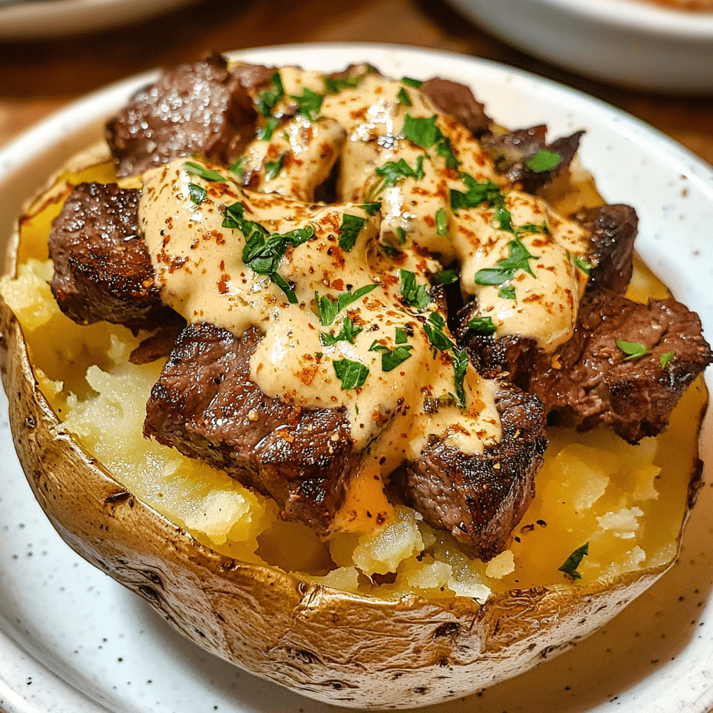 Loaded Baked Potato with Steak Bites is the ultimate comfort food that combines tender, flavorful steak with creamy, loaded potatoes. Whether you’re serving it for dinner, a special occasion, or a fun family meal, it’s sure to be a crowd-pleaser. This hearty dish offers a satisfying balance of flavors and textures that will leave everyone asking for seconds. Try it today and enjoy a delicious, filling meal that brings the best of both worlds to your plate.