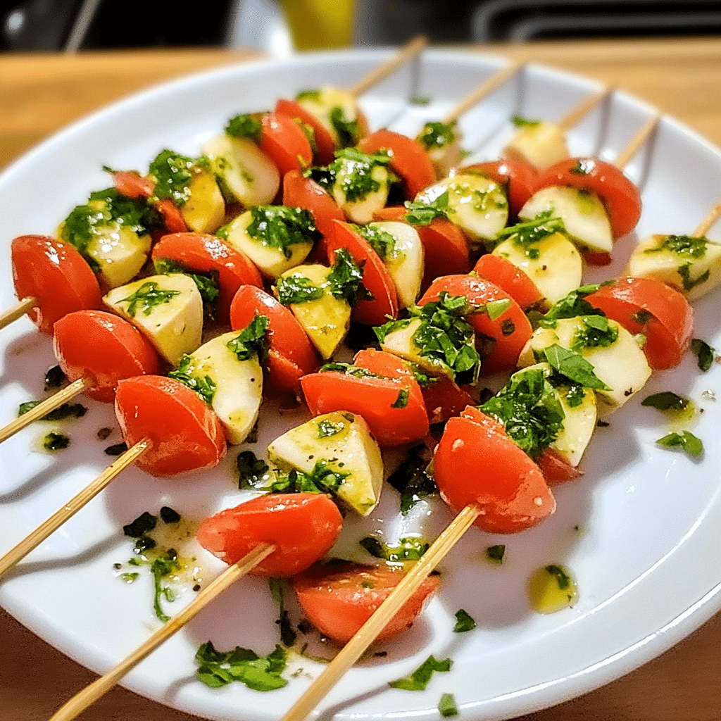 - Caprese Skewers with Avocado: Add a slice of ripe avocado between the basil and mozzarella for a creamy texture that pairs beautifully with the fresh tomatoes.