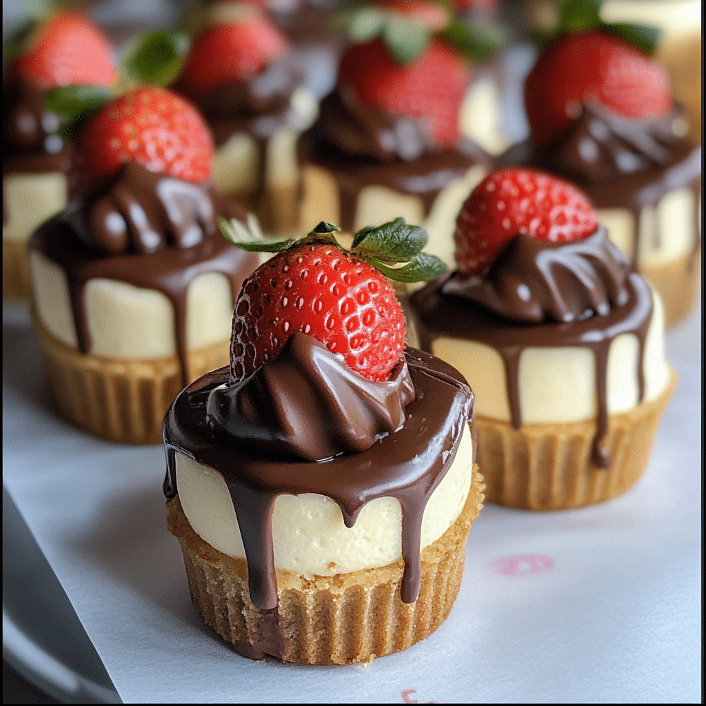- Visually Stunning: The chocolate-covered strawberries on top add a touch of elegance, making these cheesecakes perfect for sharing at gatherings or as gifts.
