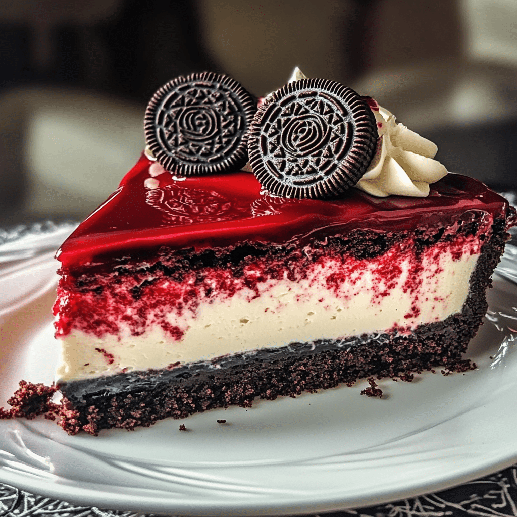 Red Velvet Oreo Cheesecake is the perfect dessert for anyone who loves a decadent treat with a stunning appearance. With its combination of rich cheesecake filling, soft red velvet cake, and crunchy Oreo crust, this dessert is sure to impress at any event. Whether you serve it for a holiday celebration or a special occasion, it’s guaranteed to delight everyone who tastes it. Try this recipe today and enjoy a slice of indulgent, colorful goodness!