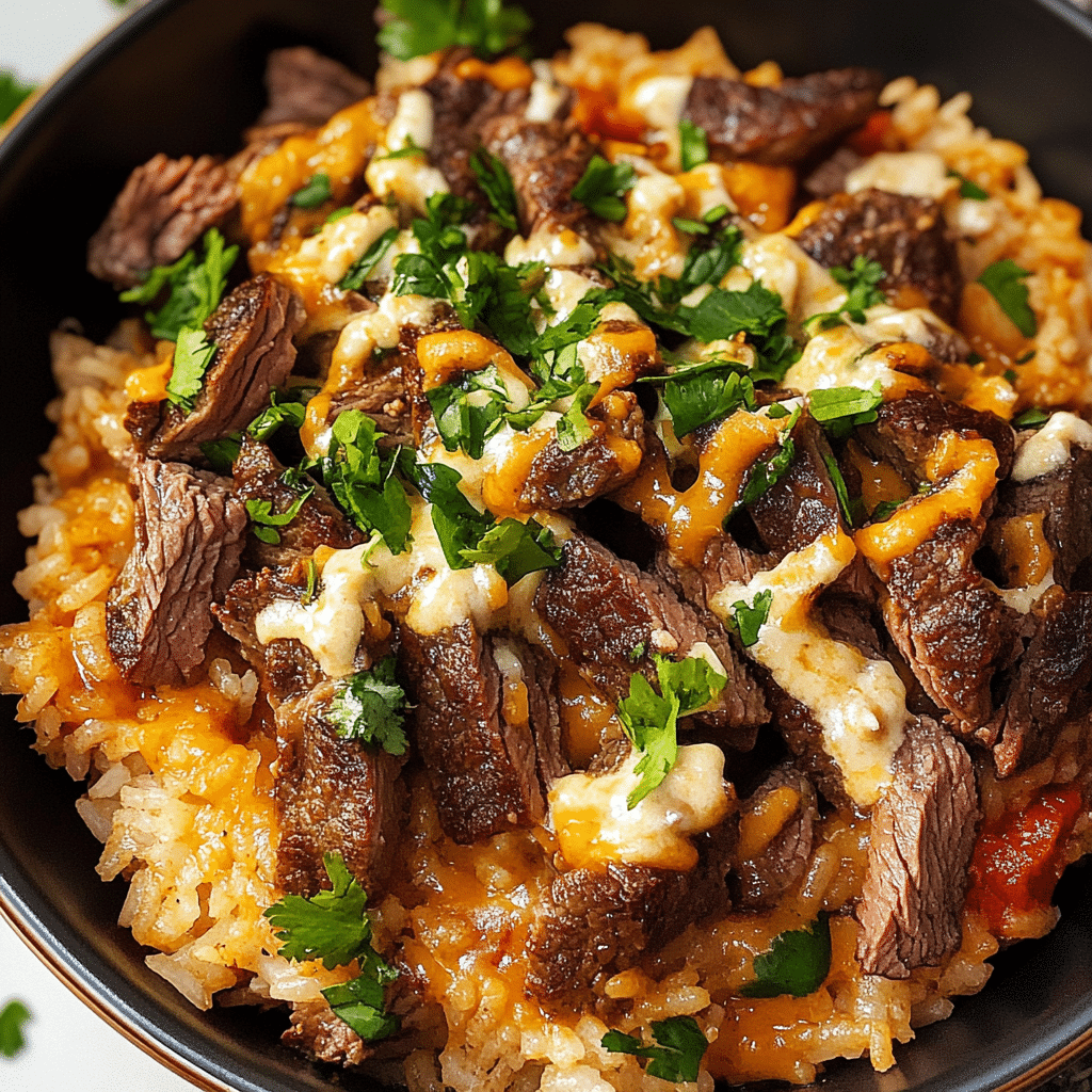 - Comforting and Filling: The fluffy rice combined with the cheesy sauce and steak makes this dish filling and comforting, perfect for a hearty dinner.