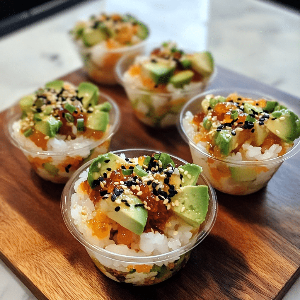 - Vegetarian Sushi Cups: Replace the fish with avocado, cucumber, carrots, and pickled radish for a fresh, plant-based option.