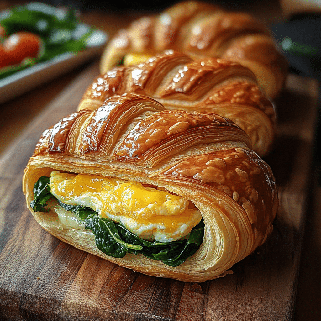 Warm Croissant Breakfast Sandwiches with Egg Cheese and Spinach