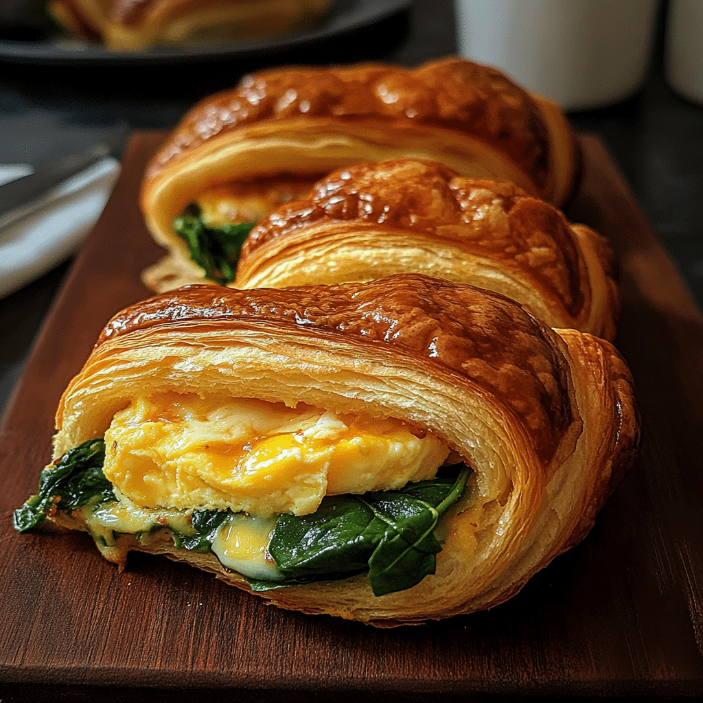 Warm Croissant Breakfast Sandwiches with Egg Cheese and Spinach